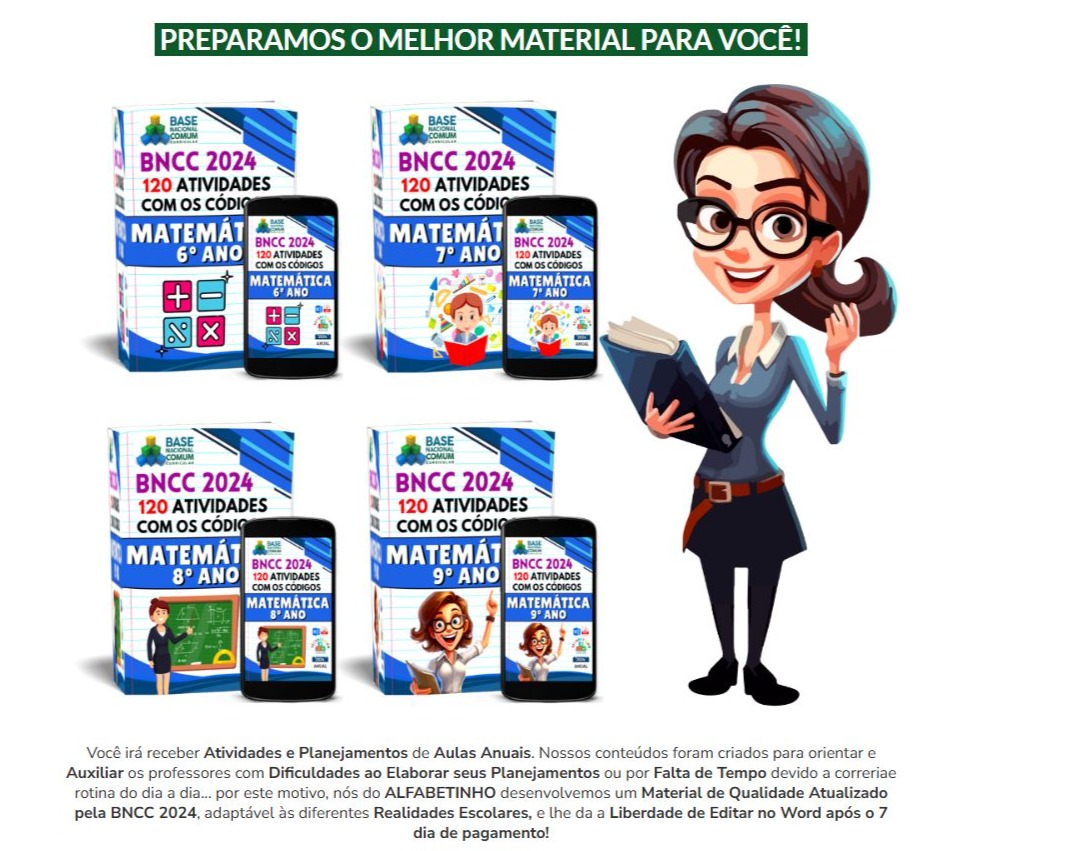 Apresentamos os Planejamentos de Matemática do 6º ao 9º ano - BNCC 2024, elaborados especialmente para você que deseja materiais prontos, fáceis de aplicar e totalmente alinhados com a BNCC. Criado pela equipe pedagógica do Alfabetinho, com professores com mais de 30 anos de experiência, este recurso foi pensado para facilitar sua rotina de ensino e garantir aulas de alta qualidade.